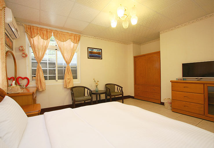 客房資訊 平日 假日 定價 溫馨雙人套房二 NT$1,500 NT$1,800 NT$3,600 加人 NT$400/人 NT$500/人 NT$600/人 包棟(8~12人) NT$7,000 NT$8,000 NT$12,000