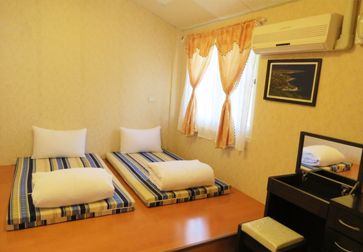客房資訊 平日 假日 定價 溫馨四人雅房二 NT$600/人 NT$700/人 NT$31,000/人 加人 NT$400/人 NT$500/人 NT$600/人 包棟(8~12人) NT$7,000 NT$8,000 NT$12,000